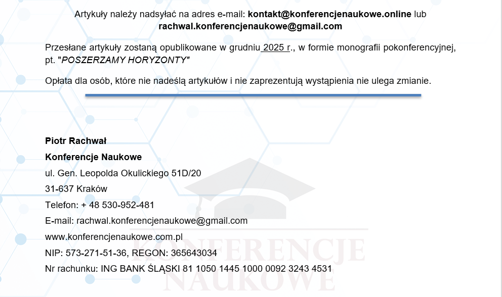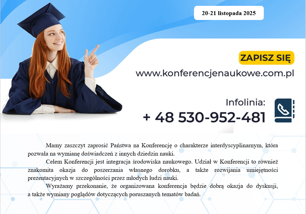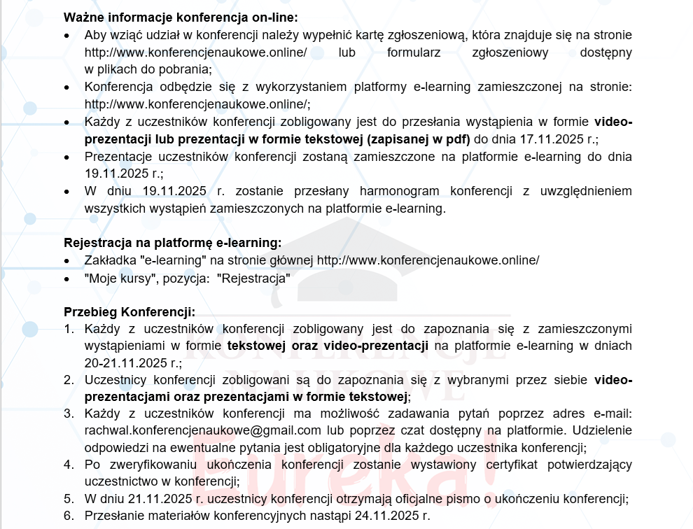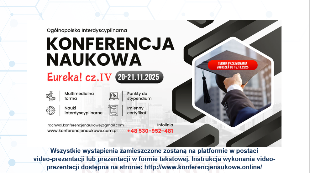 Ogólnopolska Konferencja Interdyscyplinarna pn. „EUREKA CZ. IV”; Konferencja on-line; Termin: 20-21.11.2025; Opłata 159 zł; Termin przyjmowania zgłoszeń 15.11.2025 r. utworzone przez Piotr Rachwał | cze 5, 2024 | Bez kategorii Formularz zgłoszenia